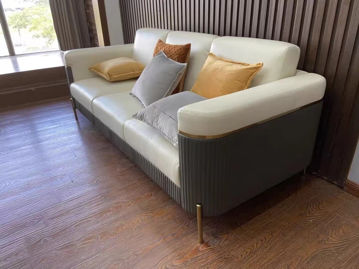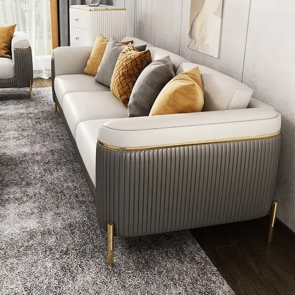 Elevate your home with our stunning Modern Microfiber Leather Sectional Sofa, designed to blend minimalistic style with daily durability. With its elegant top-grain leather look on the outside and stain-resistant microfiber on the inside, this sofa is perfect for families with kids and pets.