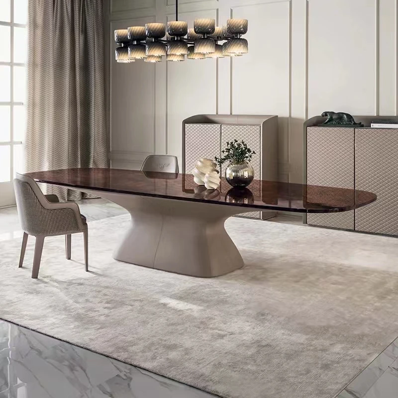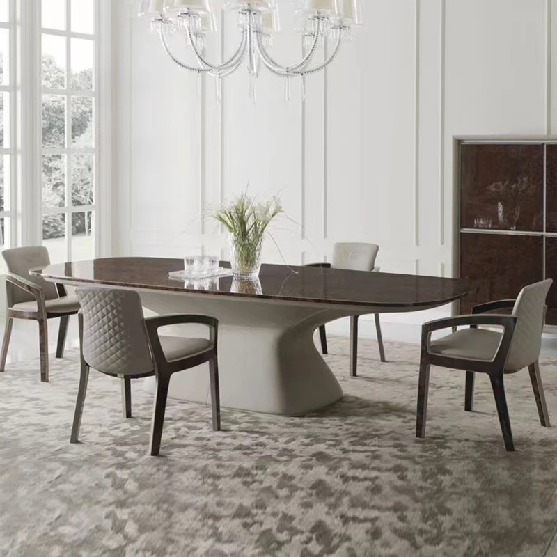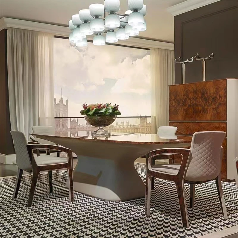 The accompanying chairs are upholstered in premium top grain leather and quality fabric, offering comfort and durability for everyday dining or entertaining guests. Suitable for kitchens, dining areas, apartments, hotels, halls, and home bars, this versatile set adapts effortlessly to residential and commercial environments. Custom sizes and finishes are available to align with your décor vision. Assembly ensures a secure and lasting structure built for long-term use.