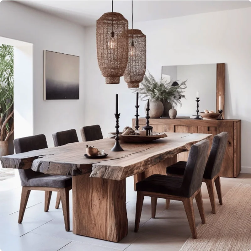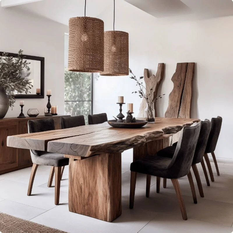 More than a dining solution, this live edge walnut set serves as a sculptural focal point that enhances architectural warmth and spatial authenticity. The balance between organic form and structural precision delivers a timeless presence, making it ideal for modern environments seeking natural sophistication and enduring performance.