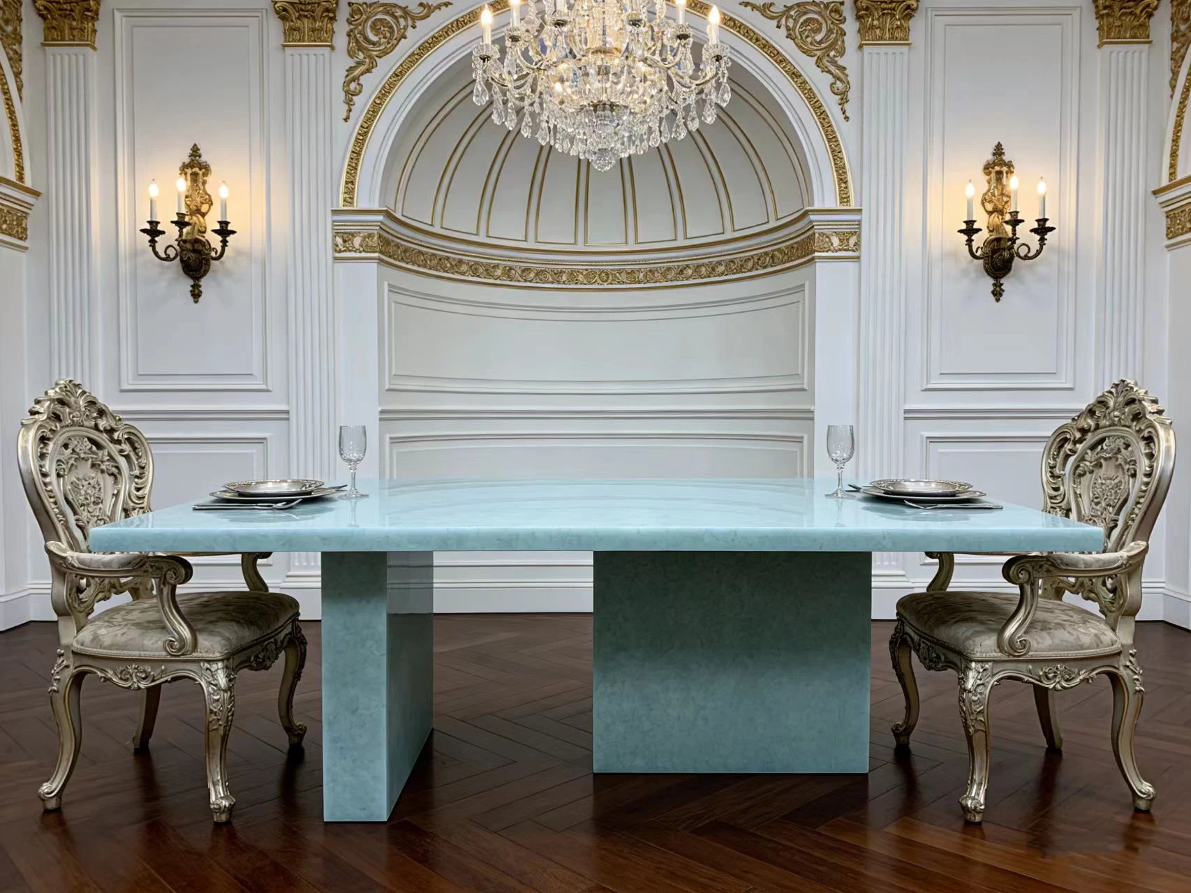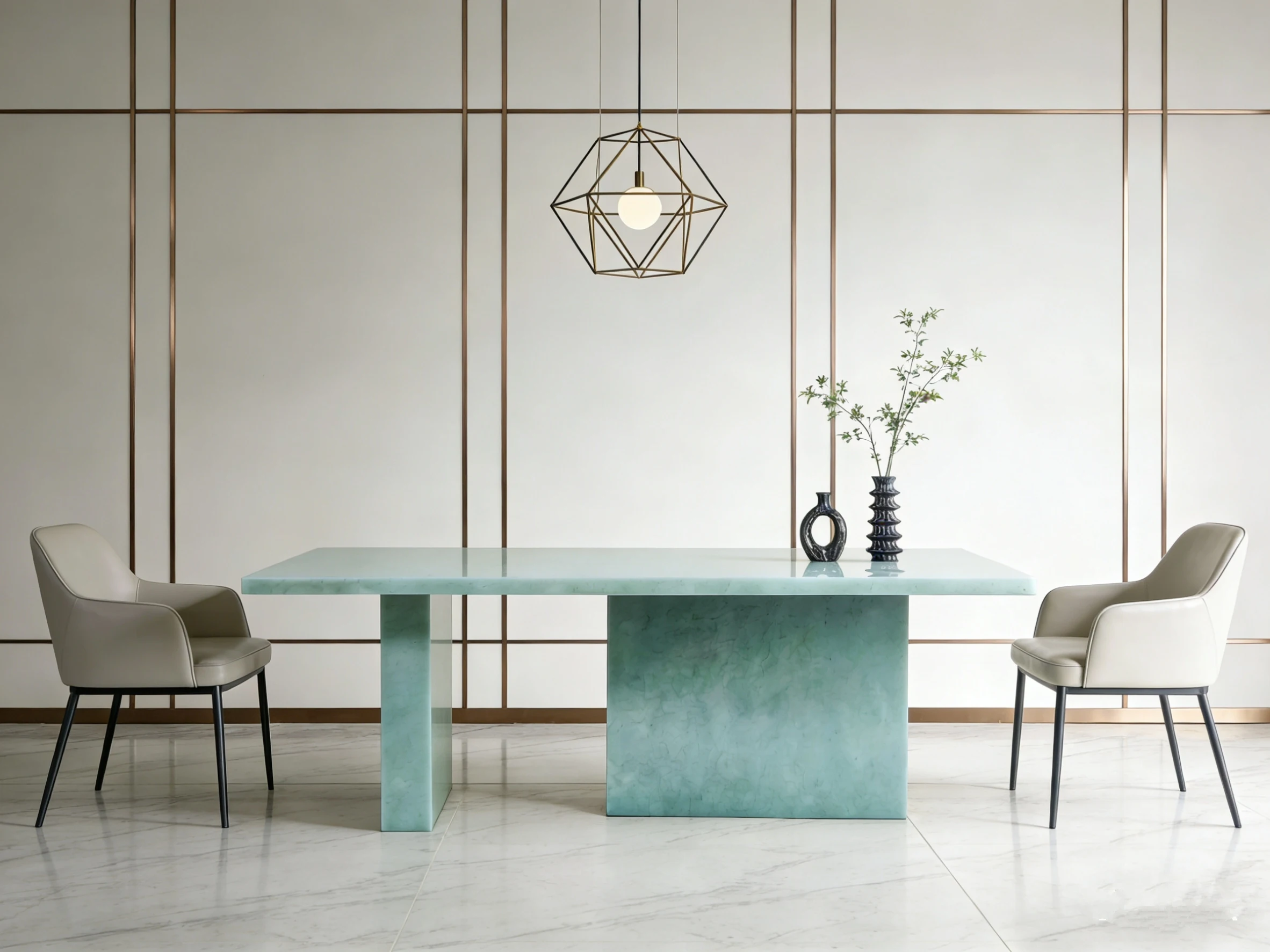 Modern Luxury Rectangular Jade Glass Dining Table – Custom Designer Glass Table