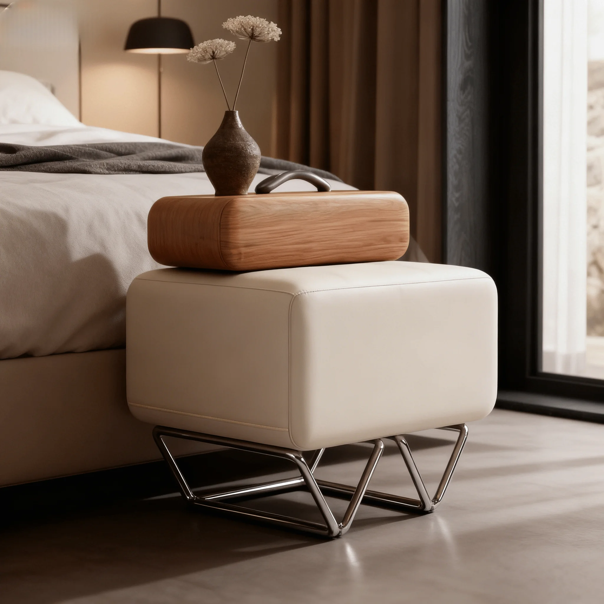 Bring the serene beauty of Scandinavian design into your bedroom with this Nordic-style wooden nightstand. Crafted from high-quality solid wood and complemented by sleek stainless steel accents, this bedside table offers a perfect balance of natural warmth and modern sophistication. The clean lines and minimalist aesthetic make it a versatile addition to any bedroom, apartment, or guest room seeking a calm, organized retreat.