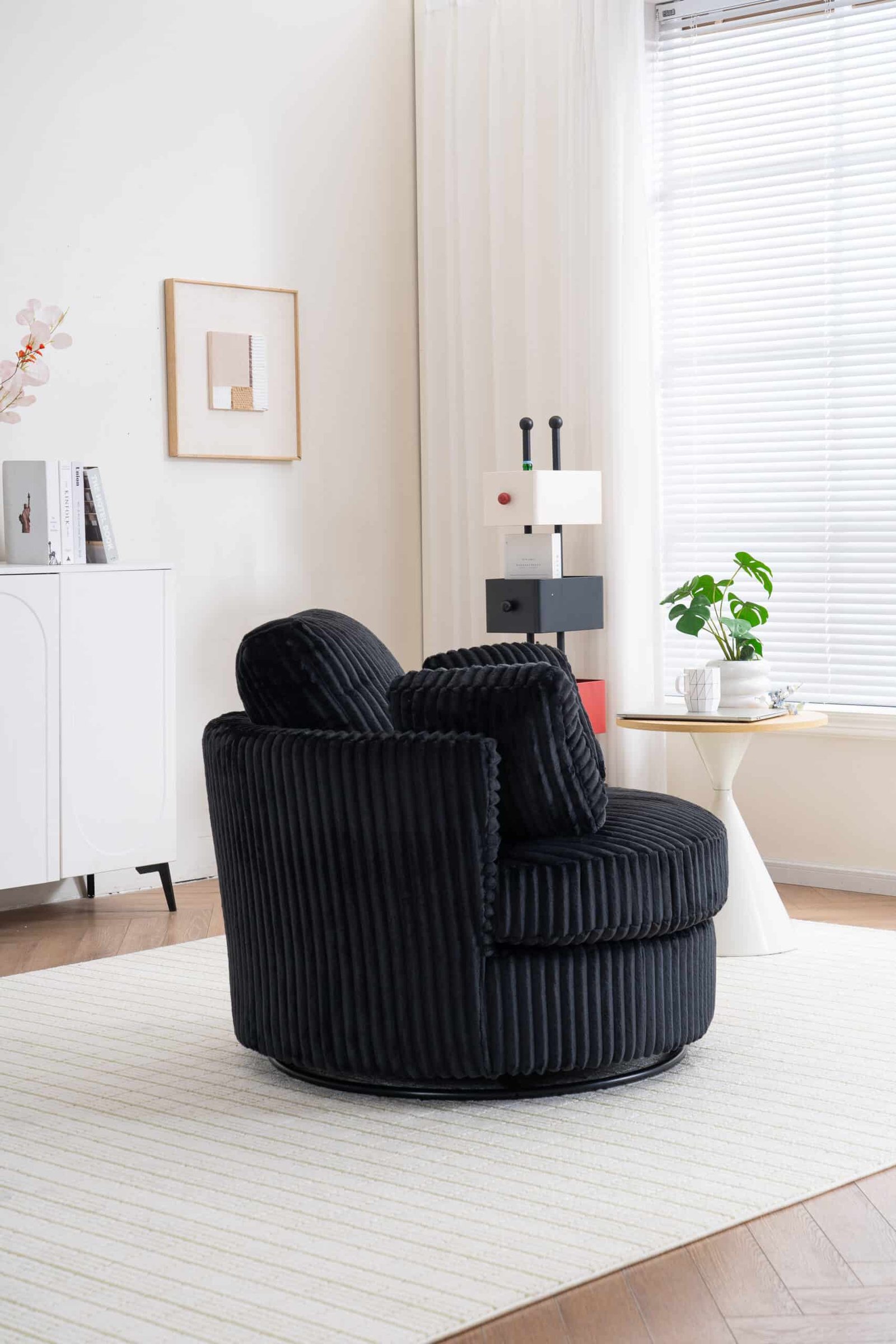 Discover the perfect blend of style and comfort with our Oversized 360-Degree Swivel Accent Chair. Crafted with a modern design, this chair is an ideal addition to your living room or bedroom, transforming any corner into a cozy retreat. With its plush corduroy upholstery and ample cushioning, you’ll experience ultimate relaxation while enjoying the versatility of a swivel base.