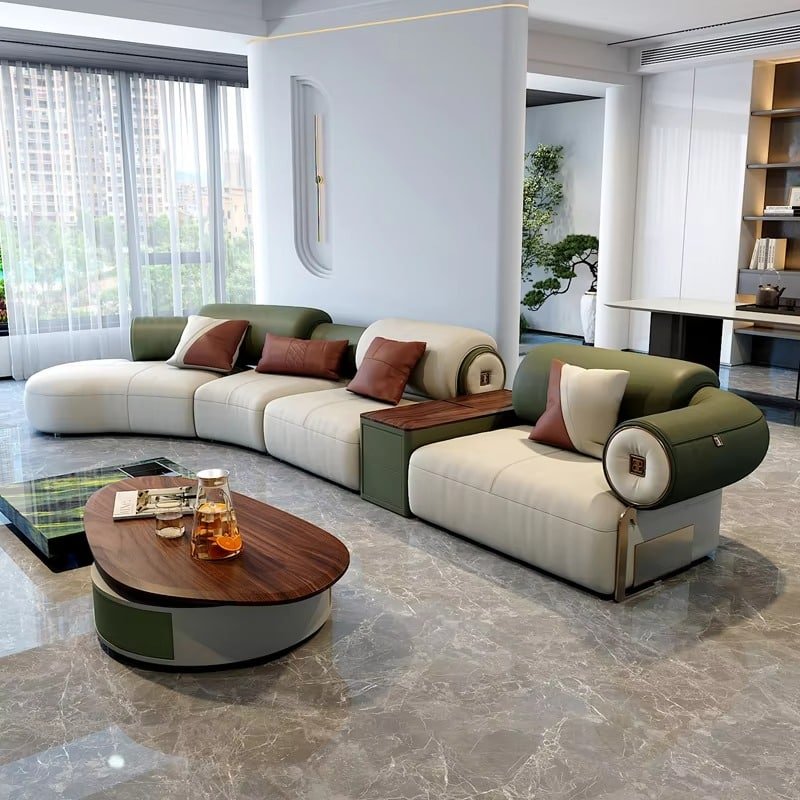 Transform your home with the exquisite style of an Italian Modern Modular Luxury Sectional Sofa—a work of art made for modern homes, trendy apartments, and luxurious villas. With minimalist elegance, it features stylish lines, customizable fabric options, and a sponge-filled seat that is both soft and comfortable. The modular design allows you to arrange your space as you wish, whether it is a single-seat corner or a complete designer layout. It combines a solid wood core with high-end leather, making this sofa a perfect blend of luxury and durability.