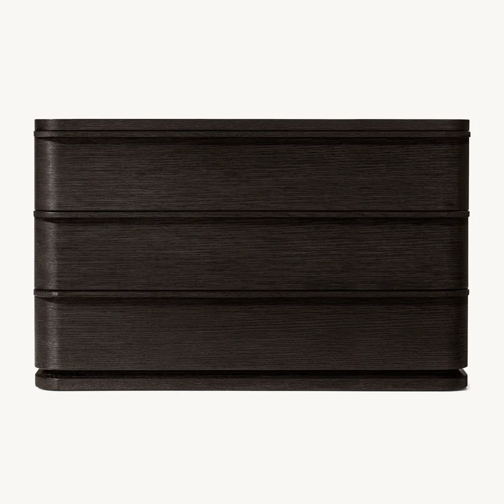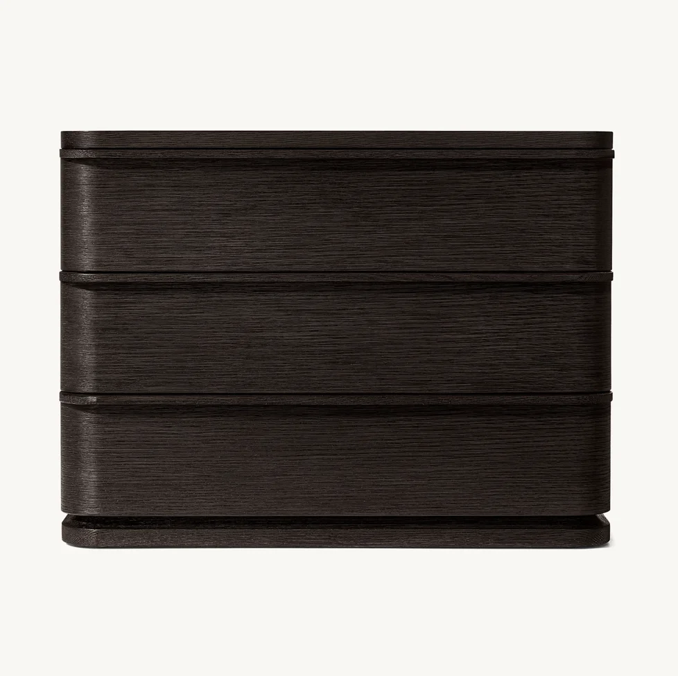 RH LIGNE Closed Nightstand – Modern Solid Wood Three-Drawer Bedside Cabinet