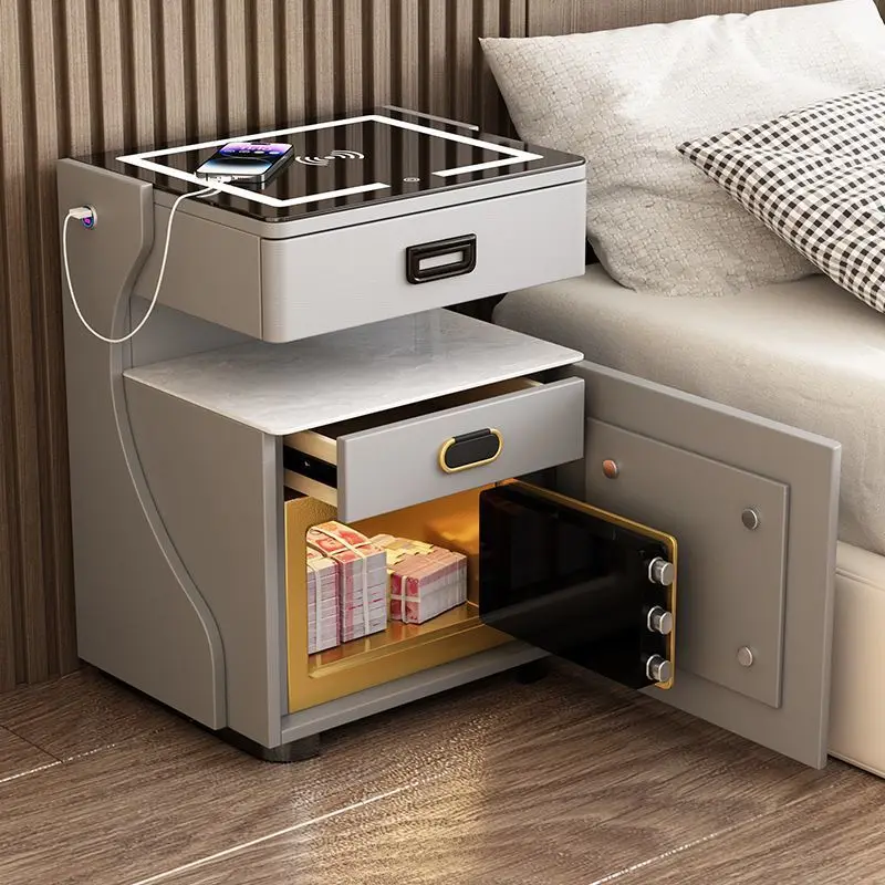 Smart Multifunctional Bedside Table with Built-In Safe – Modern Luxury Nightstand with LED & Wireless Charging