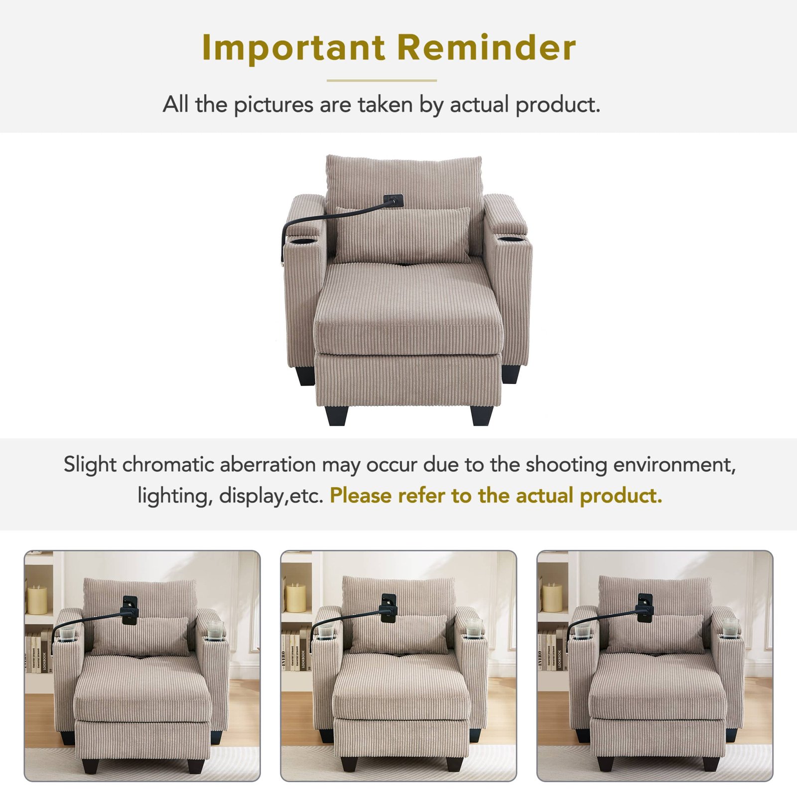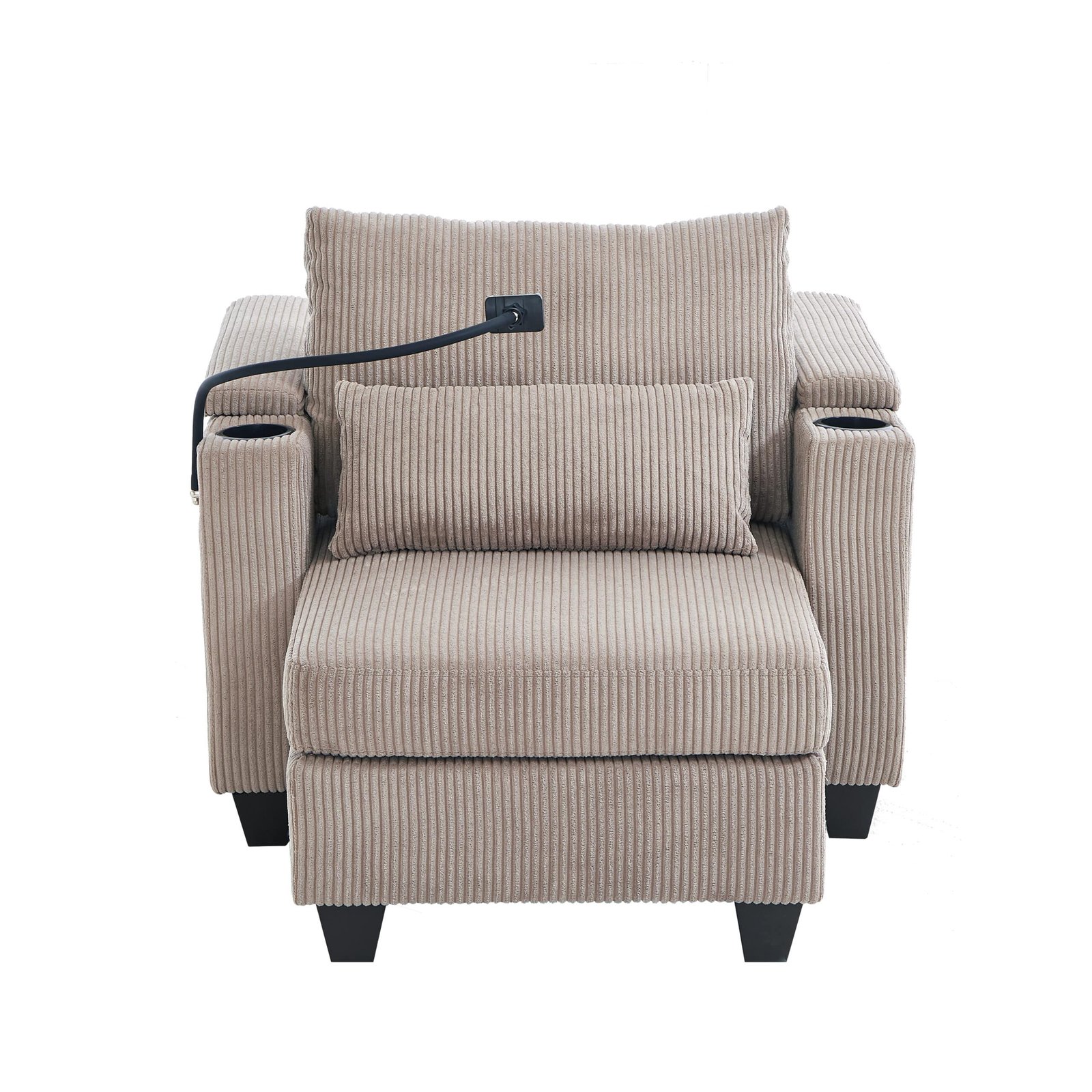 - Comfortable Upholstery: Upholstered in soft, durable corduroy, this sofa chair ensures a comfortable lounging experience, complemented by a supportive lumbar pillow.
