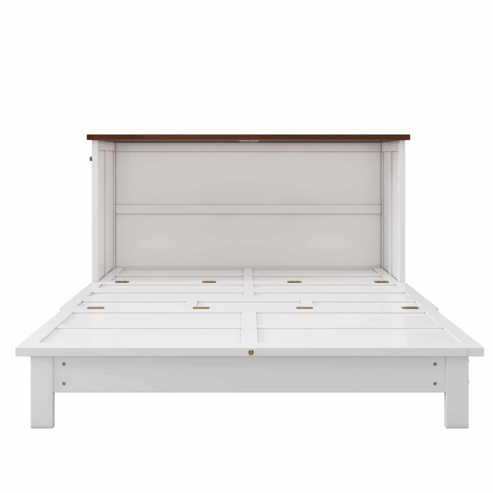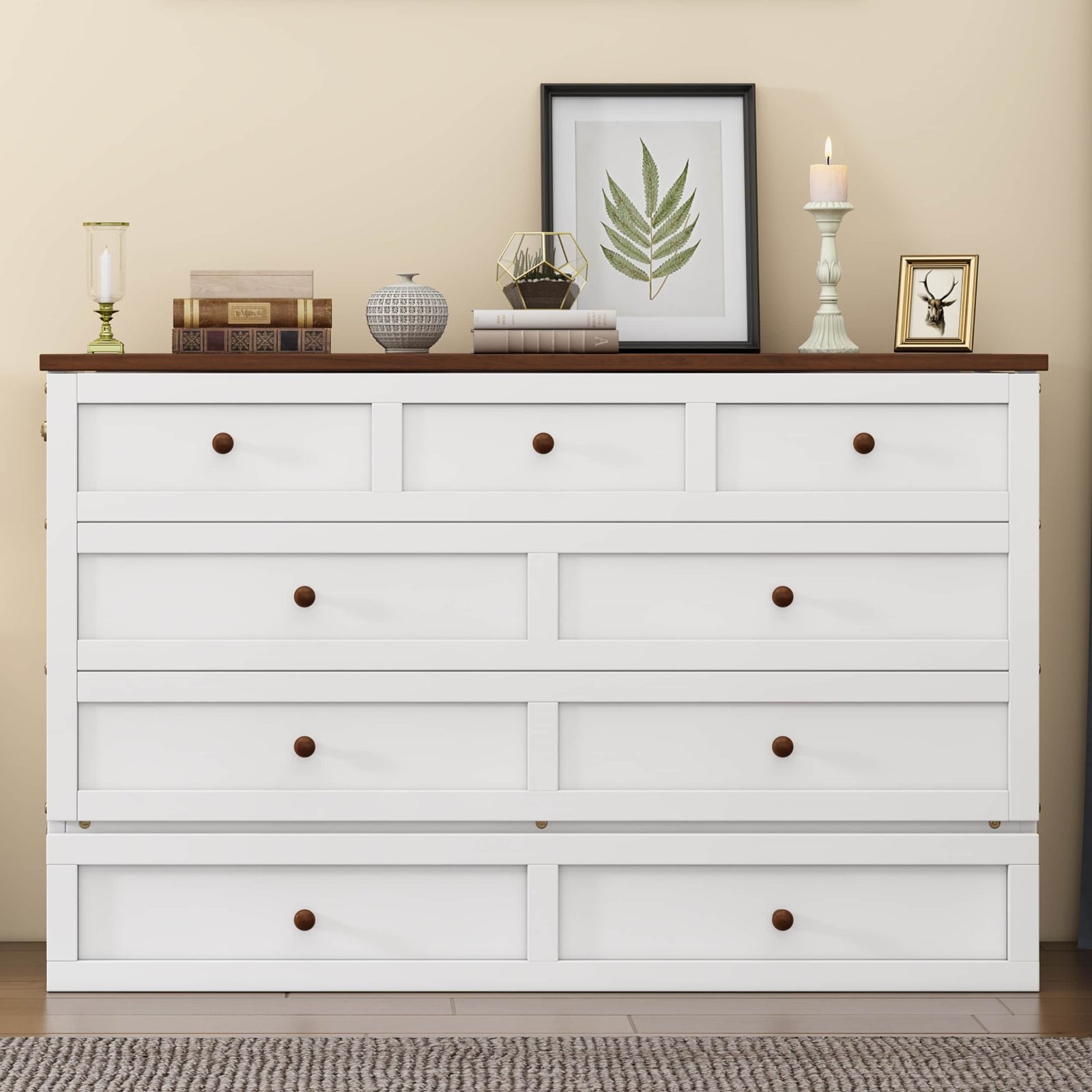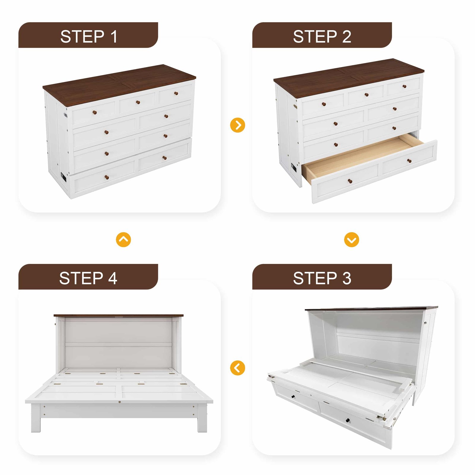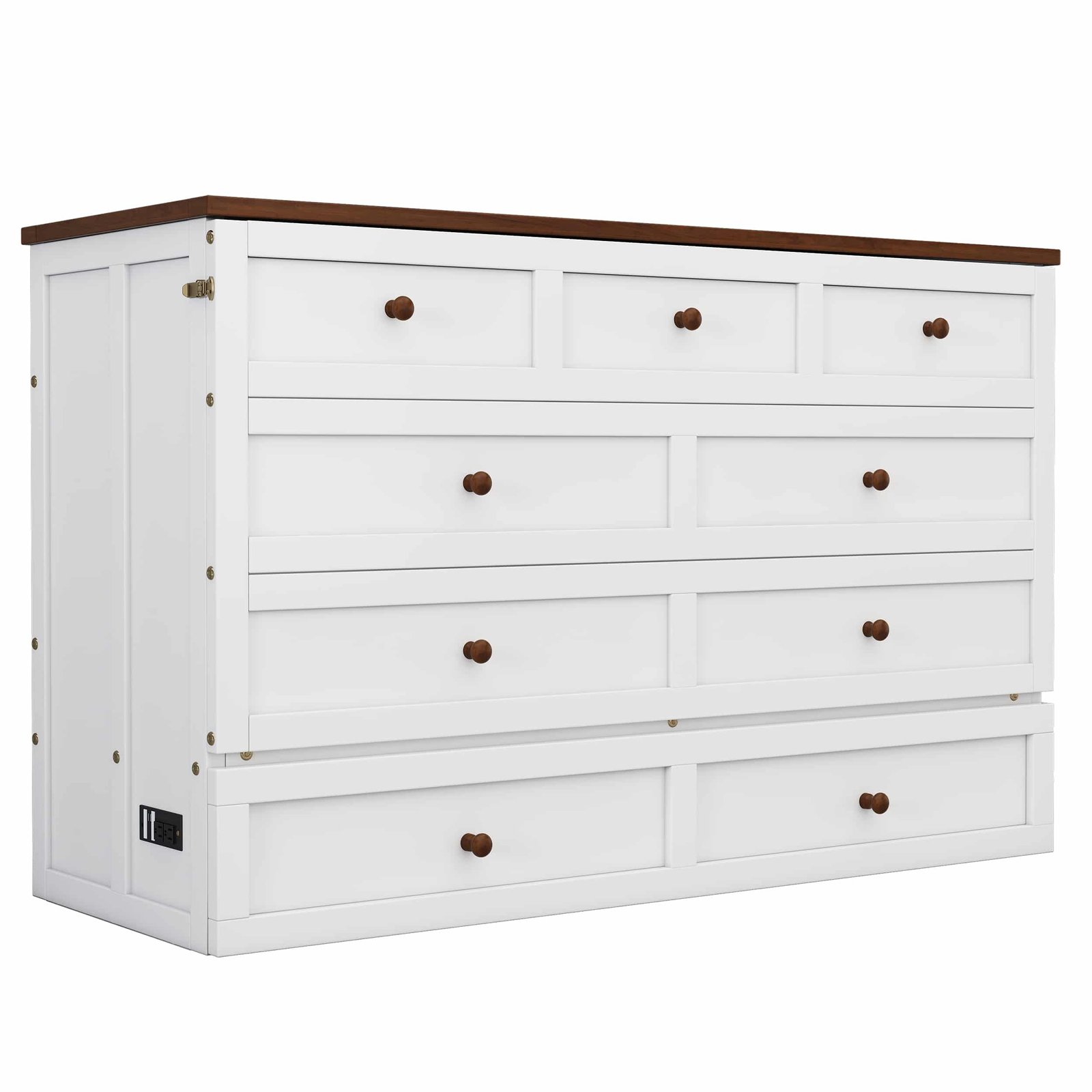 Solid Pine Murphy Bed Chest with Built-In Charging Station and Large Storage Drawer – White + Walnut