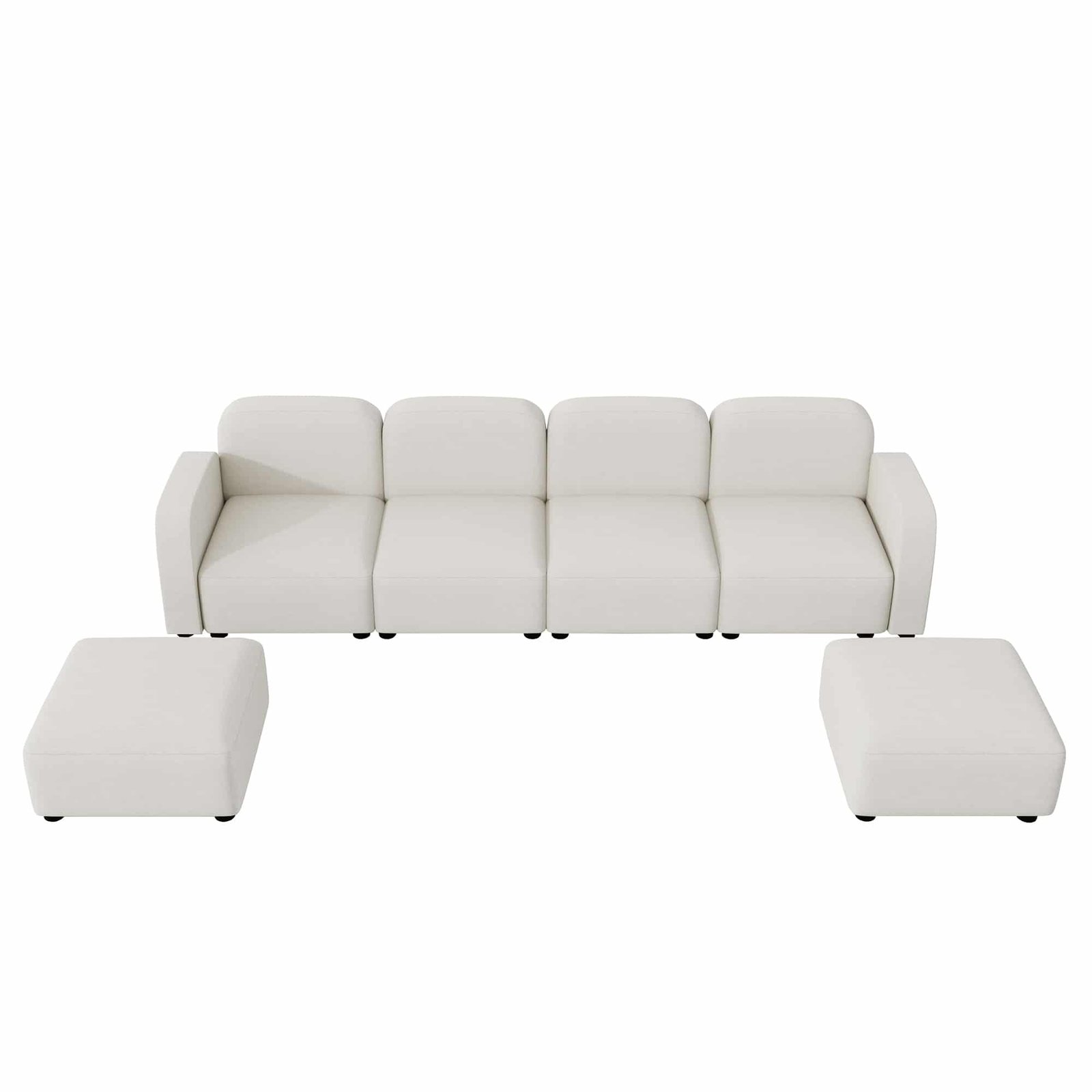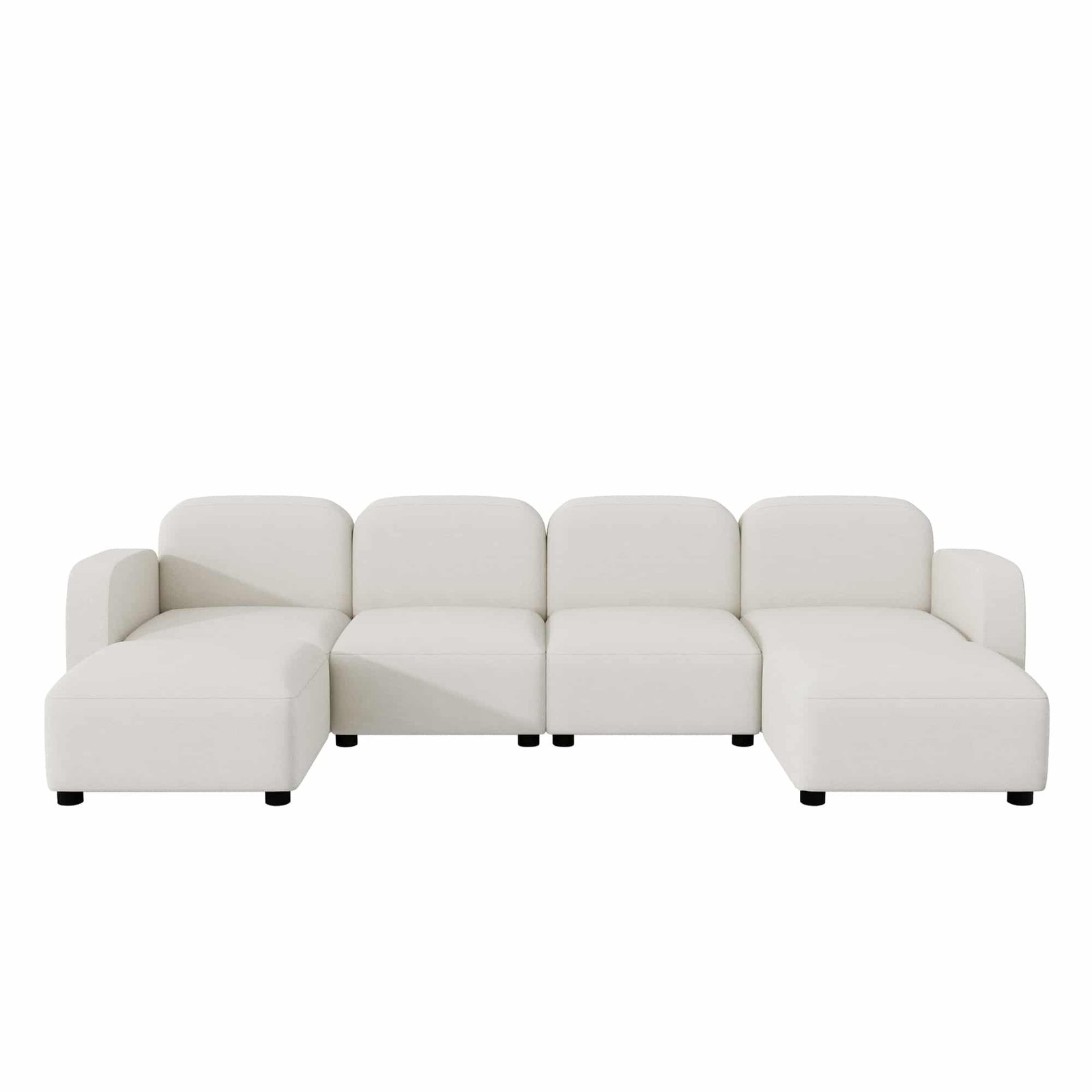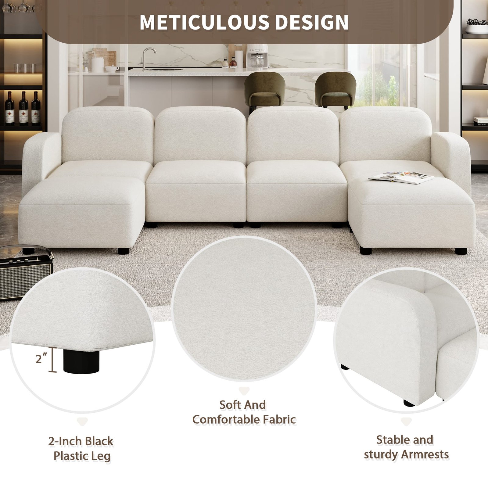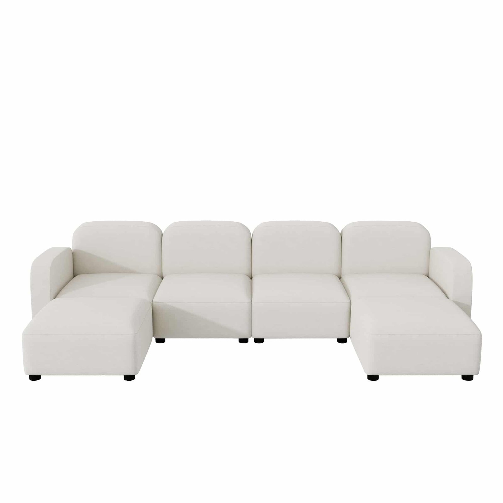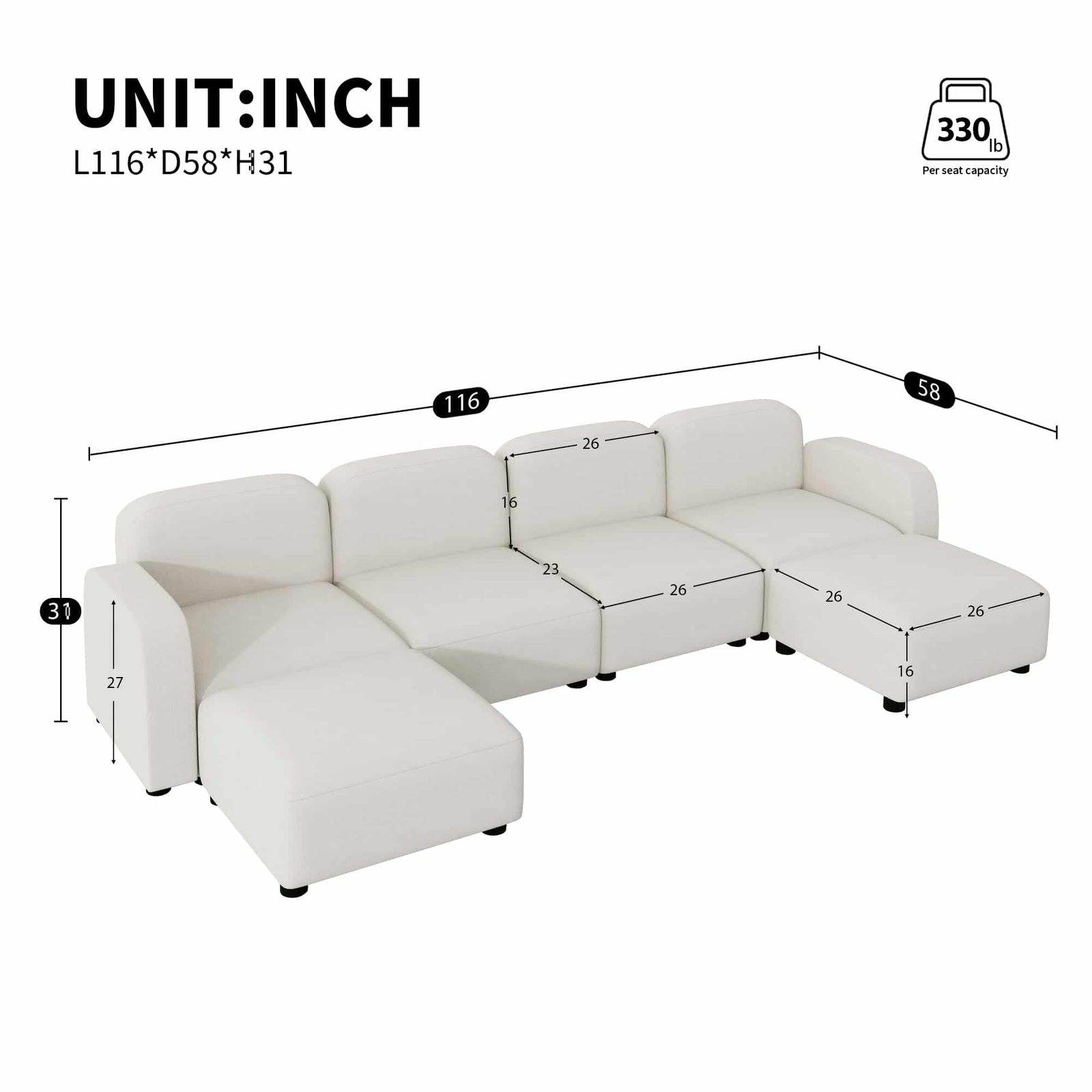 Teddy Velvet U-Shaped Modular Sofa with Ottoman – 6-Seater – Beige
