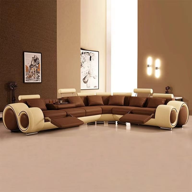 Top-Grain Leather L-Shaped Sectional Sofa with Multi-Function Reclining – Custom Color Options