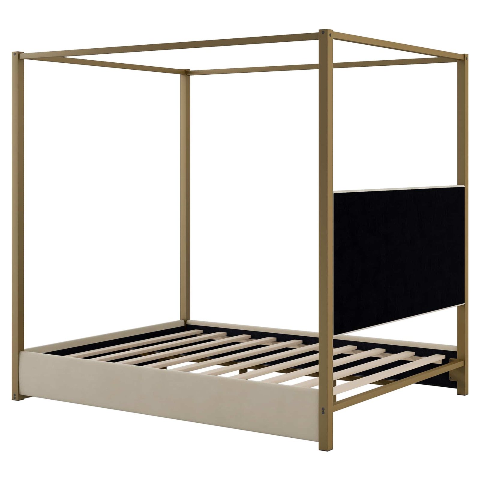 Upholstered Canopy Platform Bed with Headboard – Beige