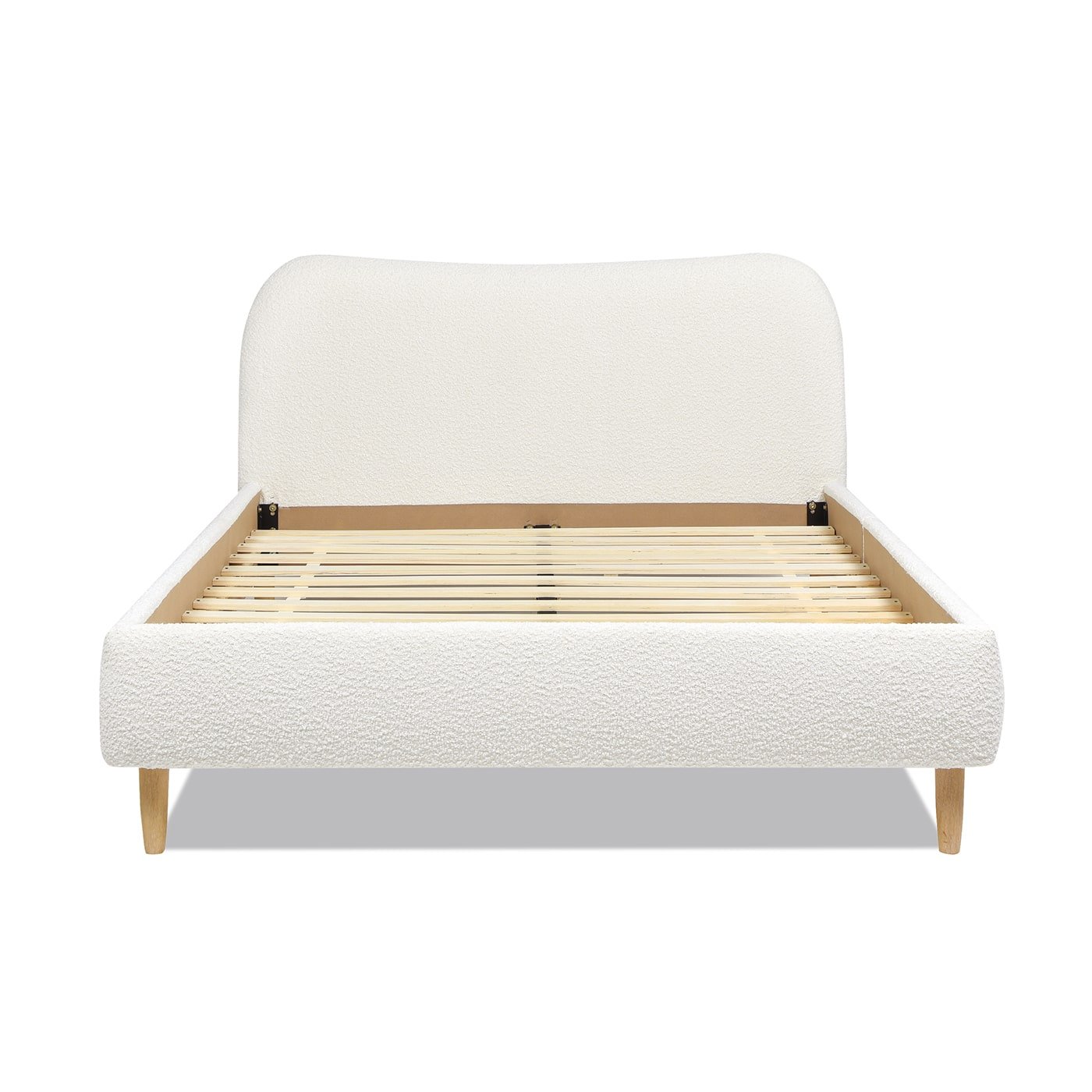 Upholstered Curved Headboard Platform Bed with Mattress Supports – Ivory White Boucle