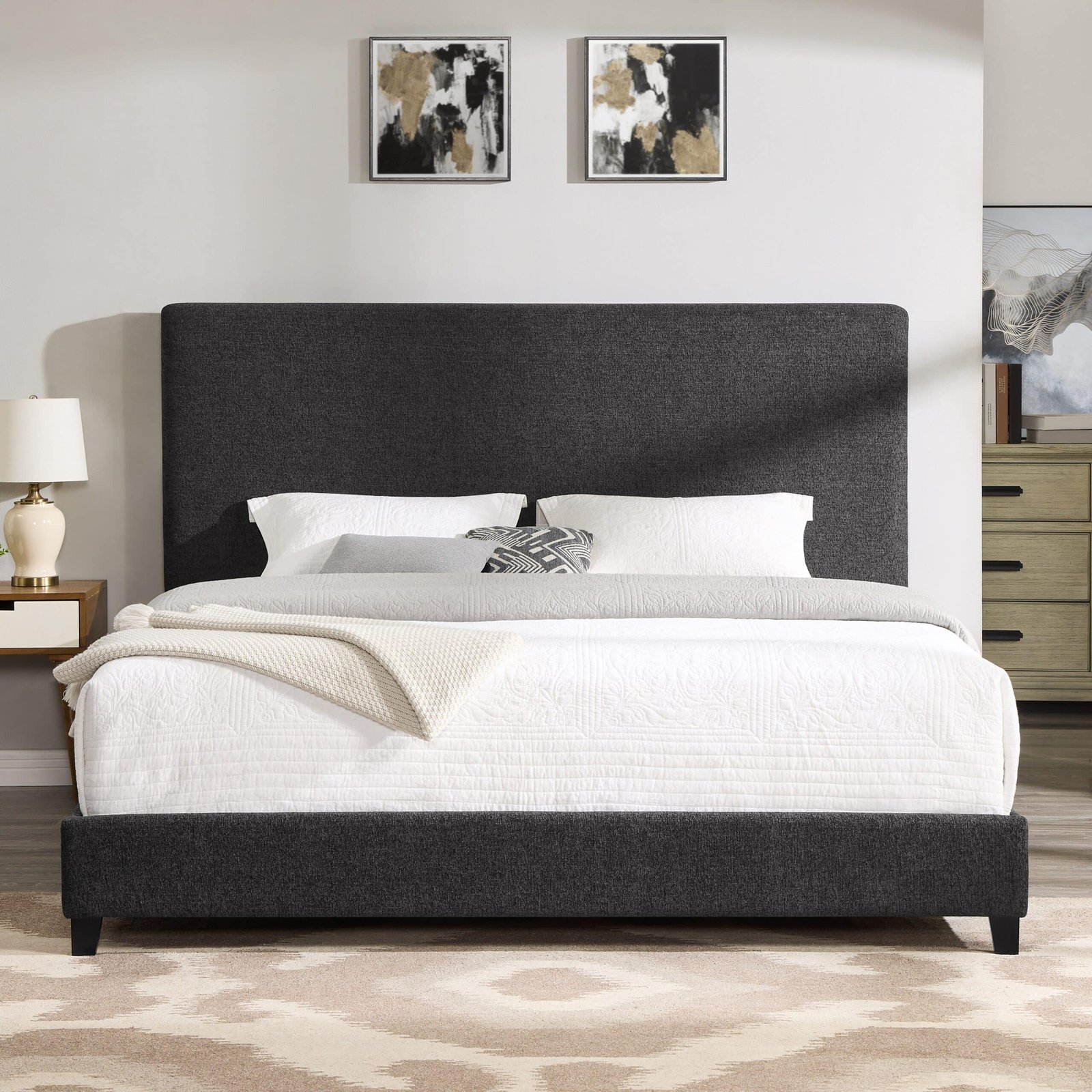 Elevate Your Bedroom with the King Size Charcoal Grey Upholstered Platform Bed