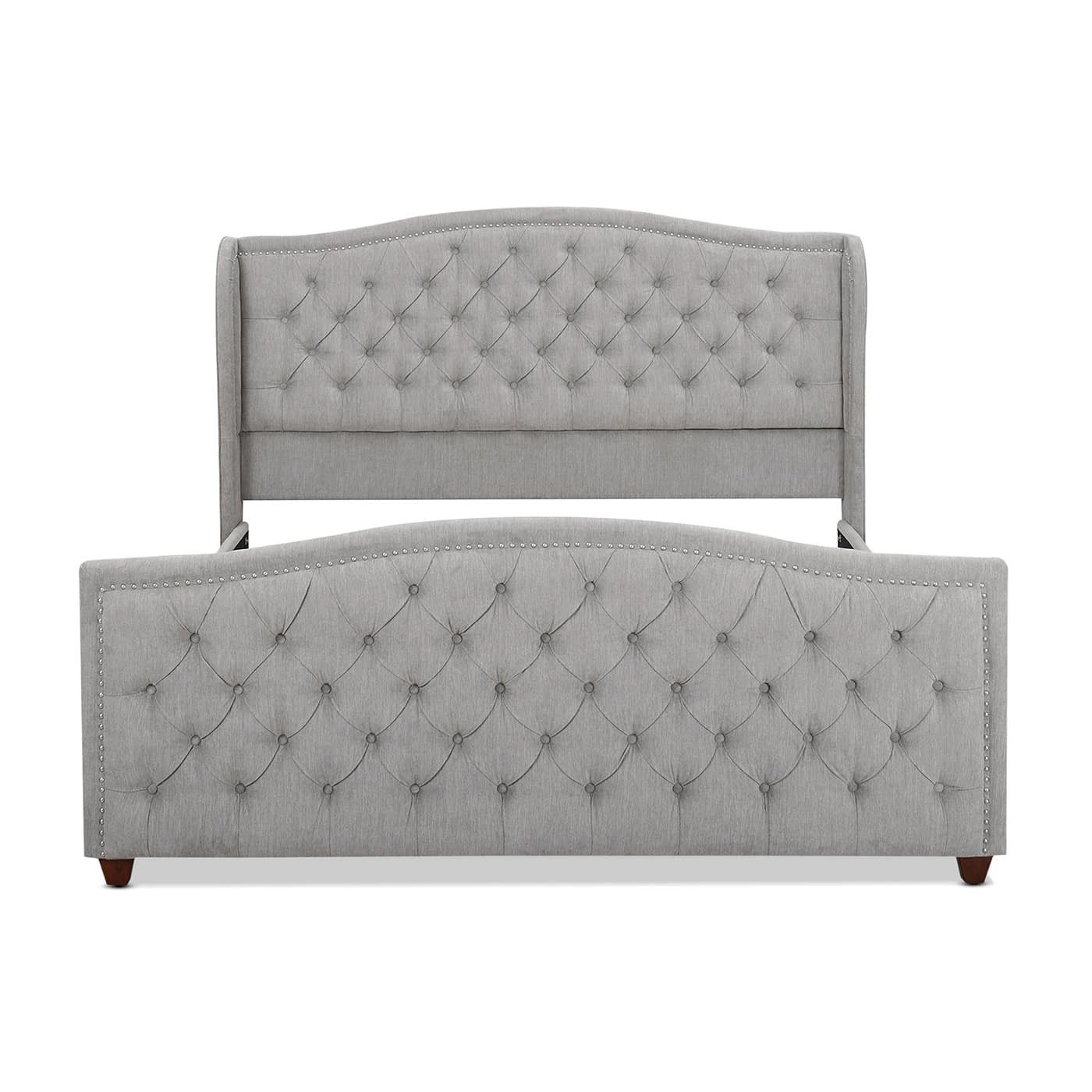 Upholstered Shelter Headboard Bed Set with Handcrafted Design – Silver Grey
