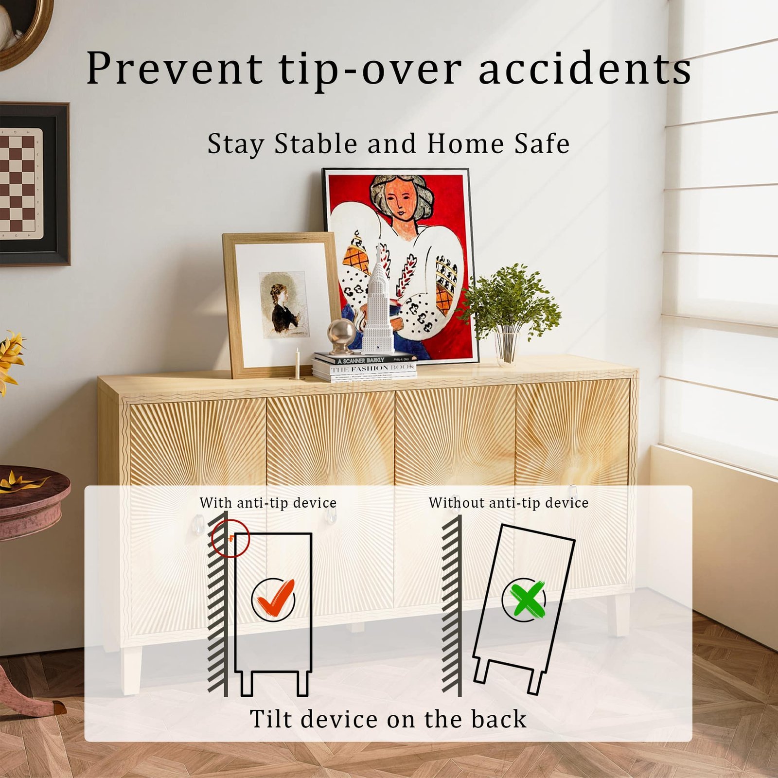 Enhance your living space with our beautifully designed Vintage 4 Door Storage Cabinet. This multifunctional accent cabinet not only serves as a stunning piece of furniture but also offers ample storage solutions for your home.