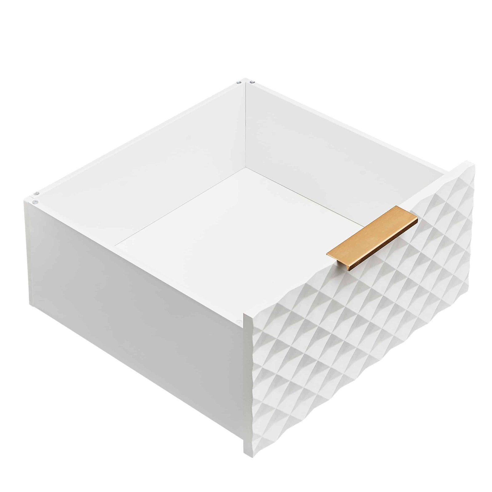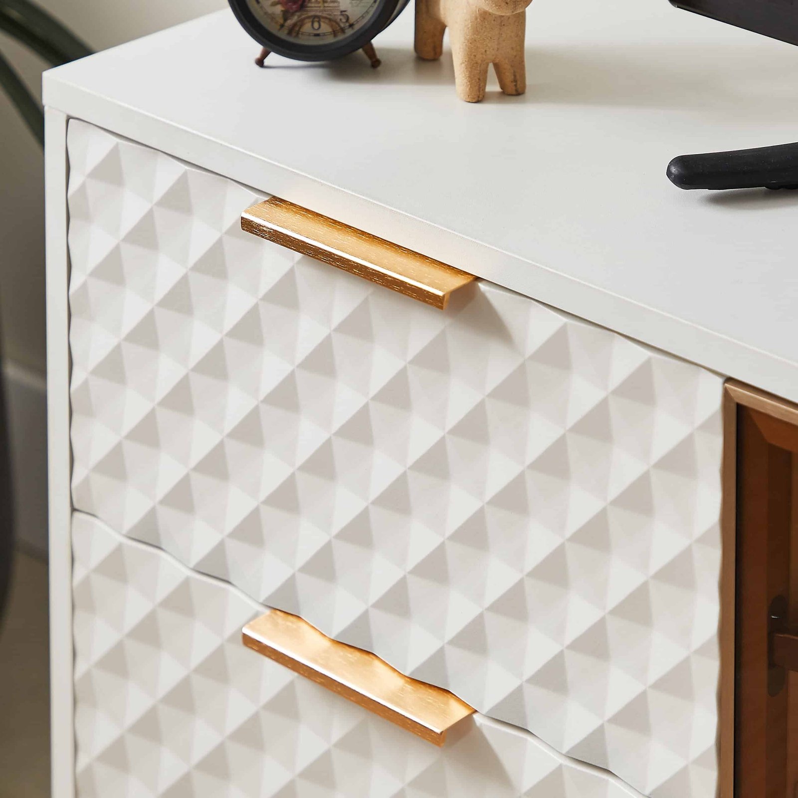 White MDF Cabinet with Geometric Design and 4 Drawers – Stylish Storage Solution