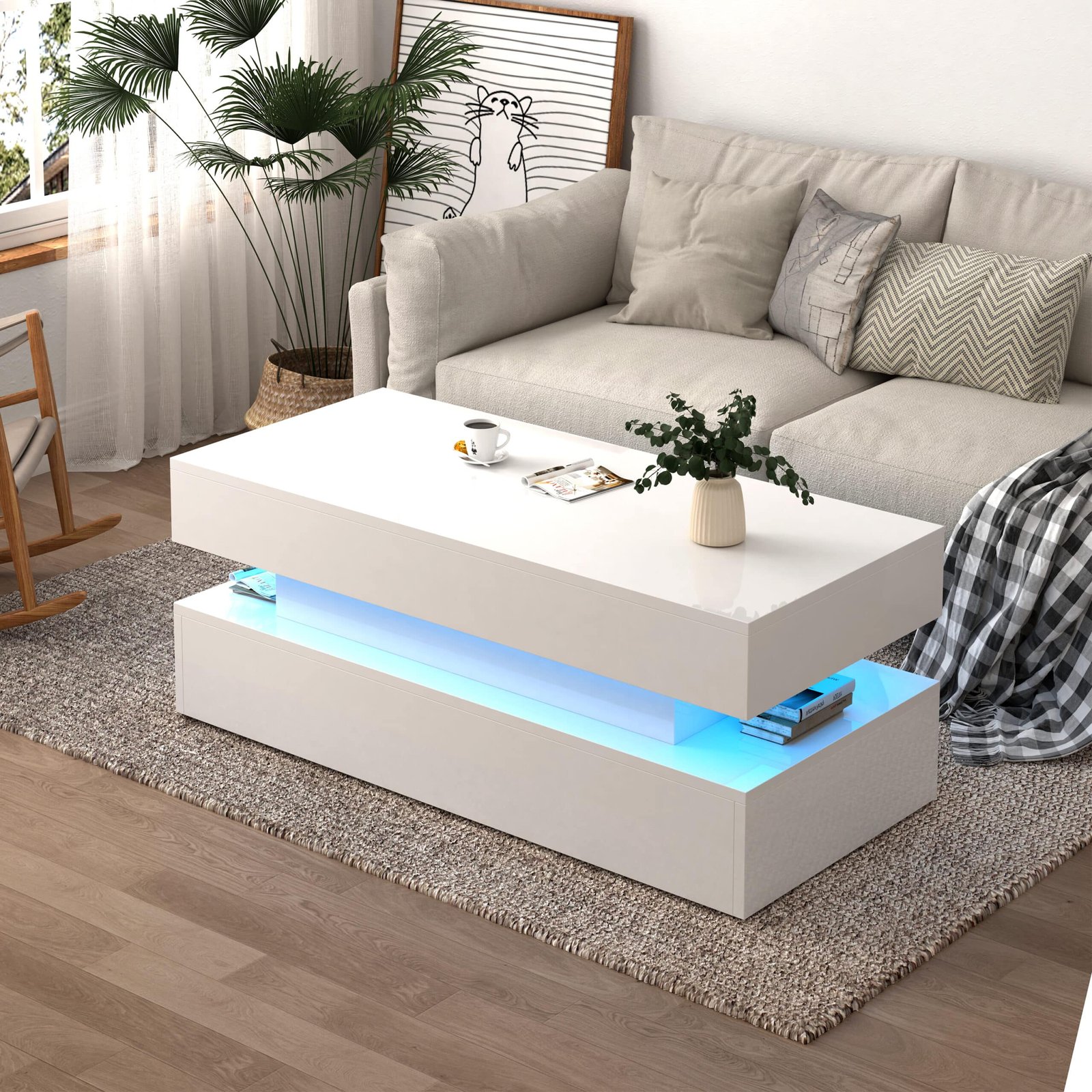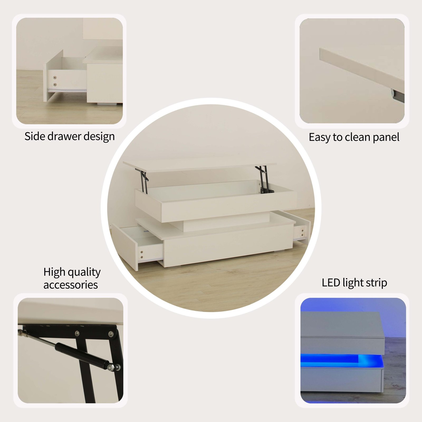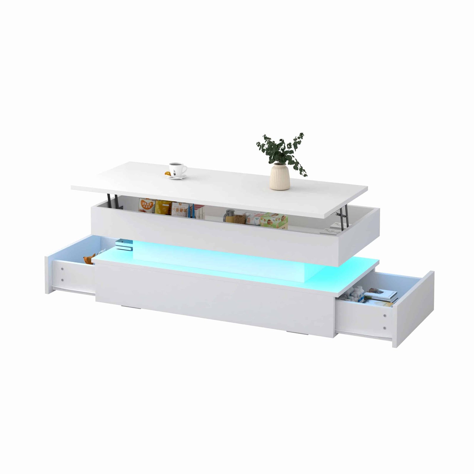White MDF Foldable Coffee Table with Drawers and LED Light Strips – Three-Tier