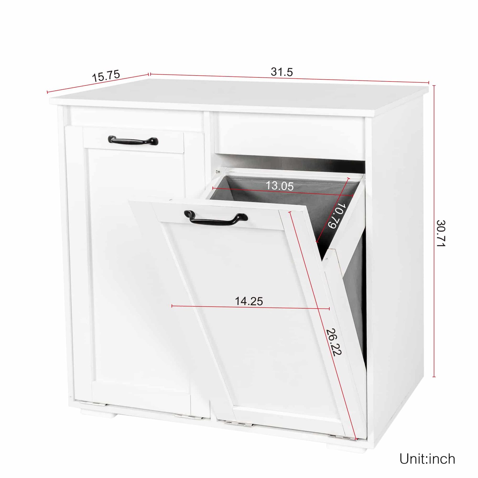 With its compact footprint (31.5″ L x 15.75″ W x 30.31″ H), this standalone cabinet fits perfectly in any corner, maximizing your space while keeping soiled clothes out of sight. Organize your home, simplify your routine, and make laundry easy. Order your laundry sorting cabinet today!