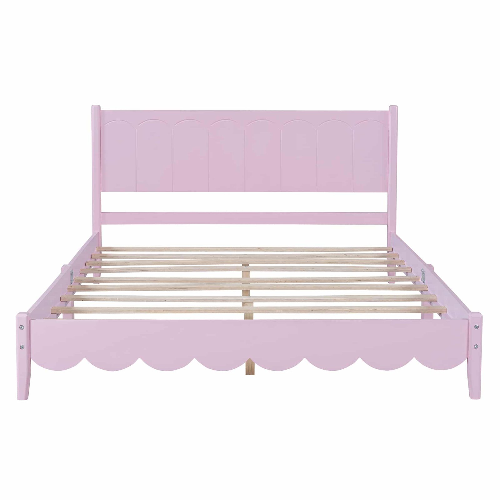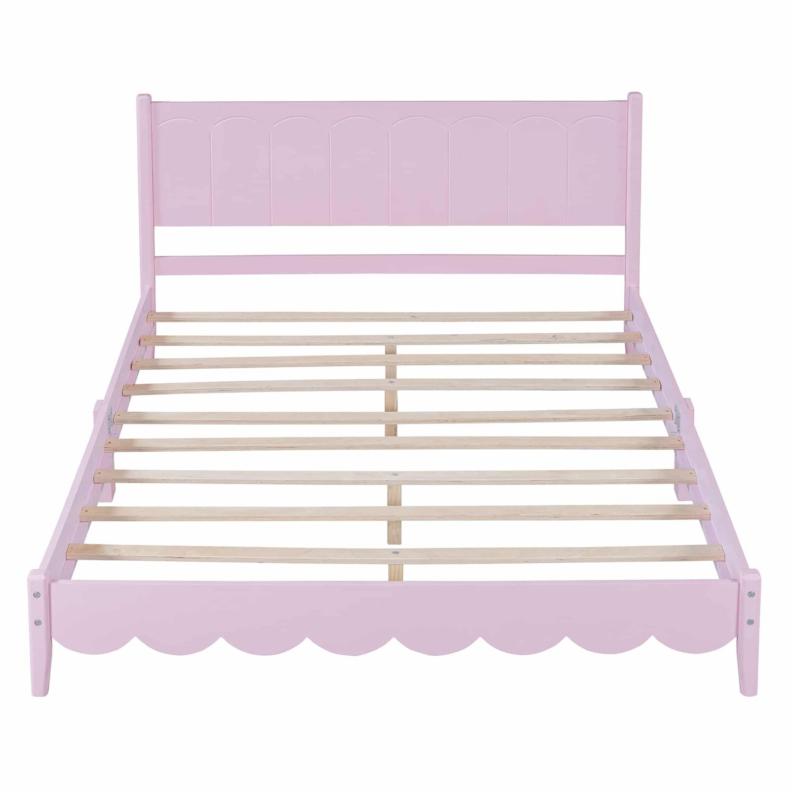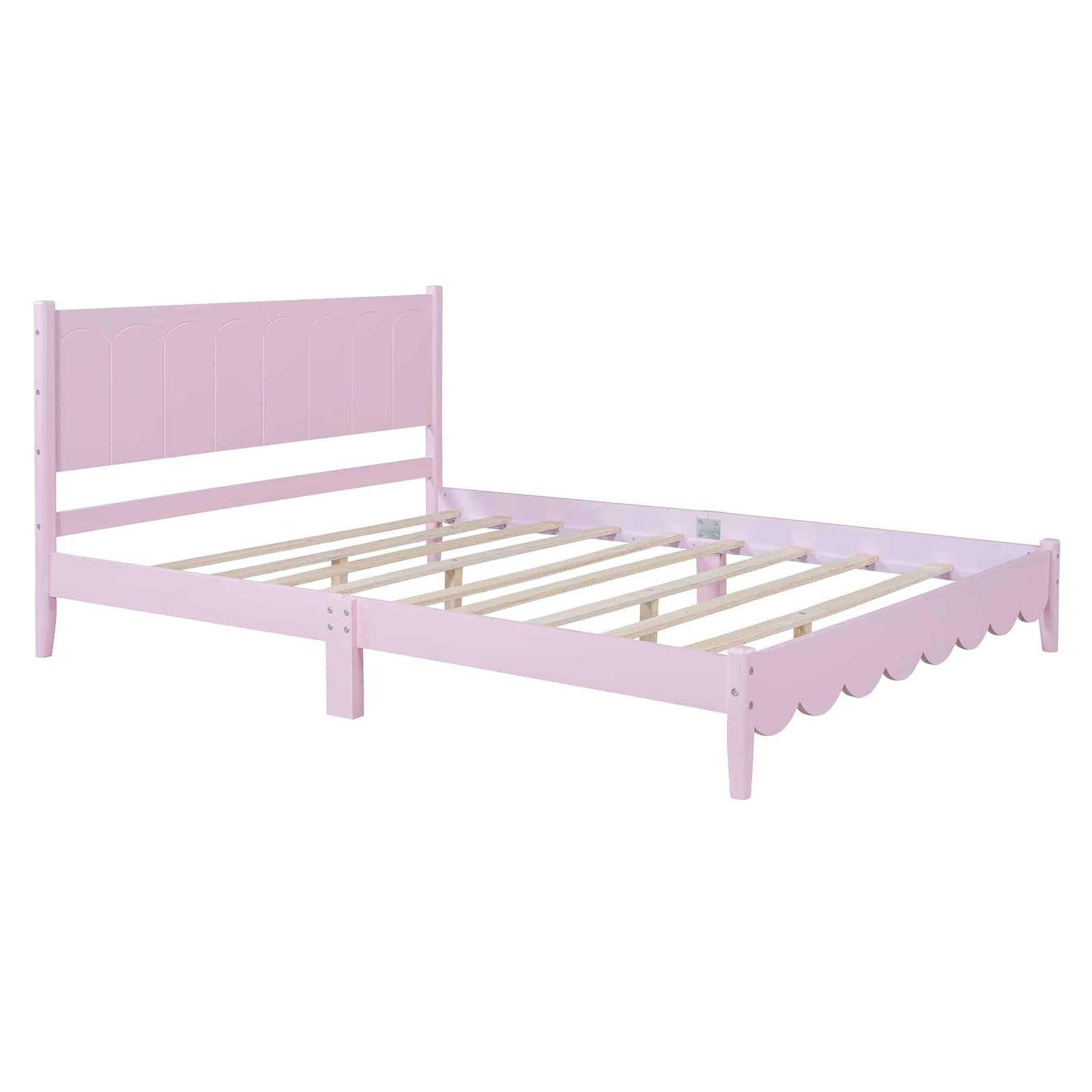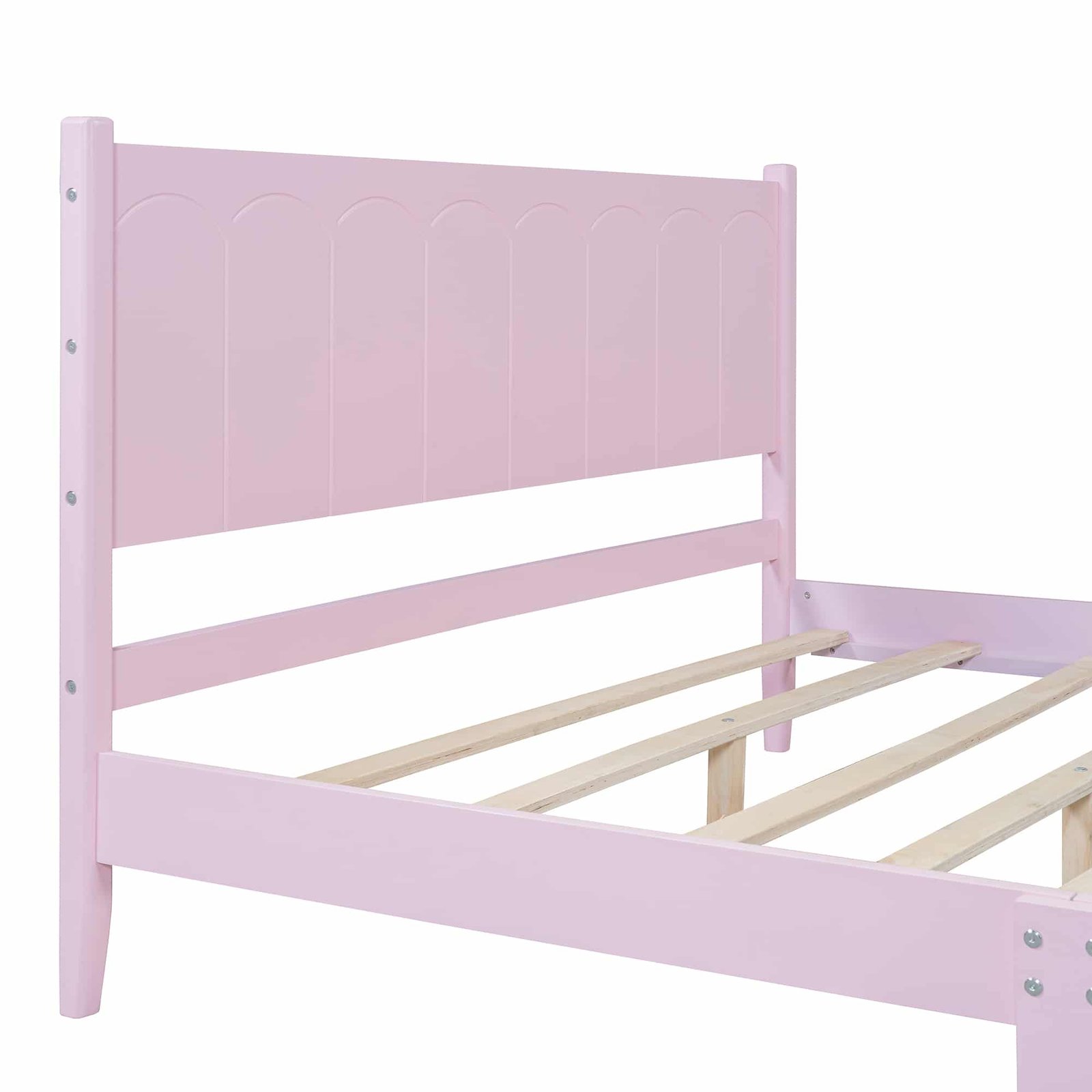 Wood Platform Bed with Rectangular Headboard – Retro Style – Pink