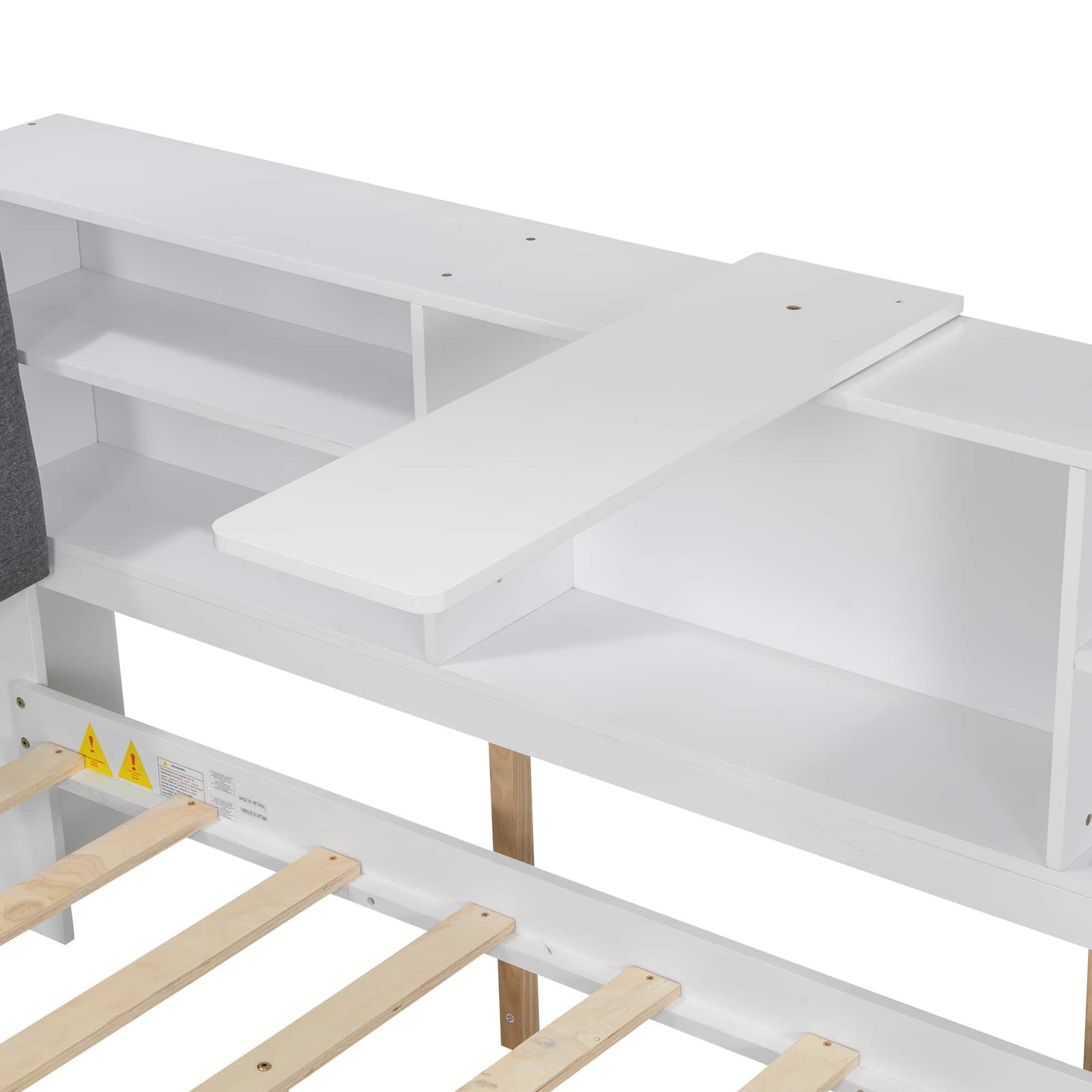 Enhance your bedroom experience with the Wood Full Size Platform Bed featuring a Trundle, Shelves, and a Storage Headboard. Perfect for those who value both style and functionality, this bed effortlessly accommodates your lifestyle needs.