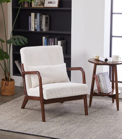 Upholstered Mid-Century Modern Accent Chair with Pillow – Beige