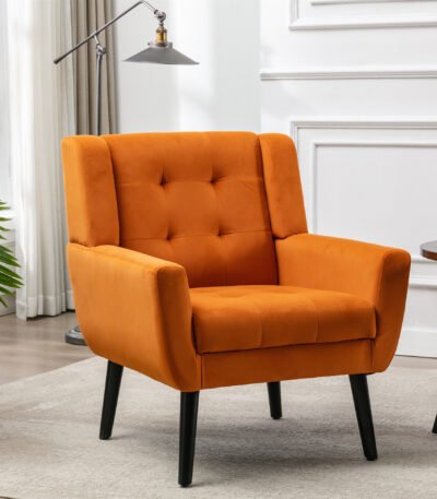 Velvet Accent Chair with Tight Back and Black Wooden Legs – Ideal for Living Room or Bedroom