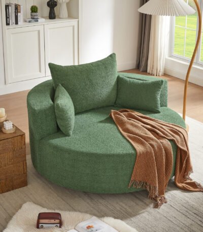 Chenille Round Accent Chair with 360° Swivel Base and 3 Removable Pillows – Green