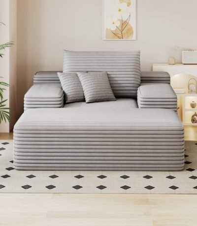 Fluffy Plush Chaise Lounge Sofa with Deep Seating – Grey