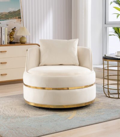 Velvet Barrel Accent Chair with 360-Degree Swivel – Beige