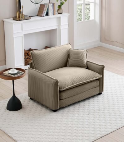 Corduroy Single Deep Seat Sofa with Retro Style – Cream