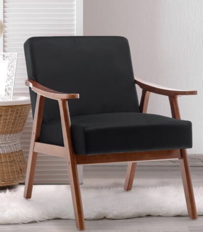 Rubber Wood Wingback Accent Chair with Extra-Thick Backrest – Warm Beige