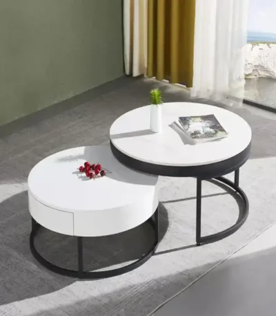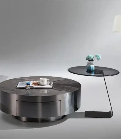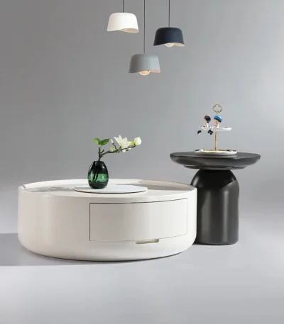 Ceramic Round Coffee Table with Drawer – Light Luxury Design