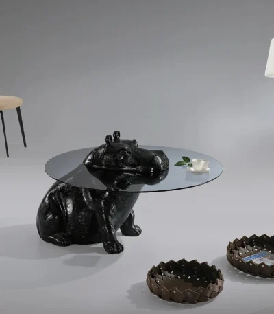 Glass Top Coffee Table with Hippopotamus Base – Unique Design