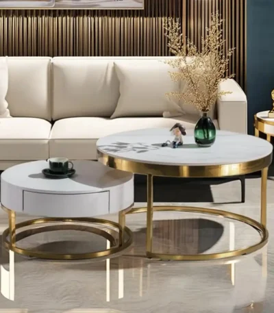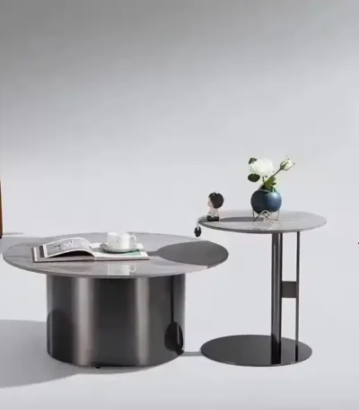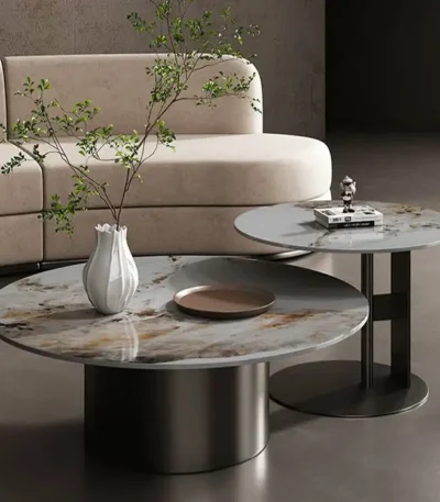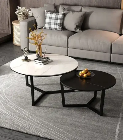 Stone Top Round Coffee Table Set with Metal Frame – Elegant Design